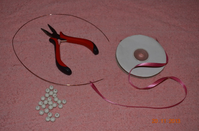 drut zginamy na połowę i w miejscu zgięcia umieszczamy koralik