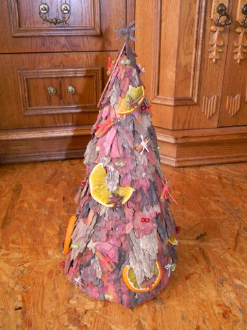korę drzewa iglastego, chociaż inne też może być ale z iglastego jest zapach choinki