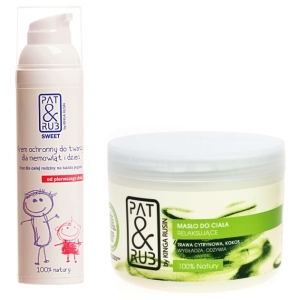 Krem ochronny do twarzy na każdą pogodę PAT&RUB SWEET jest przeznaczony do pielęgnacji cery dzieci niemowląt od 1. dnia życia. Jest bogaty w kwasy Omega oraz roślinne substancje tworzące na skórze warstwę ochronną. Zawiera również składniki łagodzące podrażnienia, jak np. olej bawełniany oraz niski filtr UV.