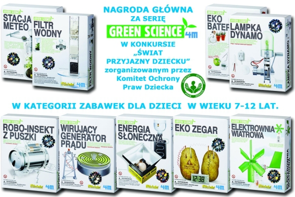 Zestawy edukacyjnych zabawek z serii Green Science w sposób bezpieczny, zabawny i ciekawy, pokazują podstawowe zasady mechaniki, fizyki i chemii. Nawiązują do ekologicznego stylu życia i sposobu myślenia poprzez wykorzystywanie podczas zabawy przedmiotów codziennego użytku i polegają na konstruowaniu z nich nowych, zadziwiająco działających zabawek.