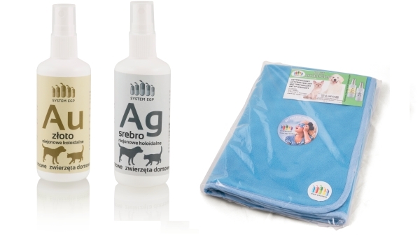 5 X PAKIET: Kocyk antyalergiczny+srebro niejonowe + złoto niejonowe dla zwierząt domowych ( właściciele ptaków lub zwierząt kopytnych mają do wyboru specjalne preparaty)